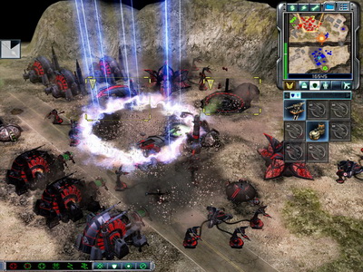 La campagne des Scrins est plus courte celle du NOD et GDI on est bien obligé de la jouer plus finement, sous peine de se faire exterminer en un rien de temps. En parlant de base, on retrouvera bien sûr une partie du charme de la série, avec la construction d'un complexe plus ou moins fonctionnel, bien gardé ou les deux. Il est d'ailleurs difficile de garder sa base intacte tant les systèmes de défense sont un peu pourris (le temps qu'il dégomme le tank et il se fait détruire avant, laissant le champ libre à l'ennemi de démolir quelques édifices). Centrale électrique, aérodromes, usine de fabrication de véhicules, liaison satellite (pour déverrouiller la carte et les attaques air-sol) et bien sûr les fameuses casernes. Il est aussi bien sympa que pour placer un bâtiment on ne soit plus obliger de le coller à une autre bâtisse sous peine qu'il ne soit pas alimenté. En fait tout est géré par zones, ce qui est excellent. Bien sûr on retrouvera la fameuse carte des événements où sont menées les guerres (Etats-Unis, Australie, Amérique du Sud et Europe) avec pour chaque mission, le choix de la difficulté, un briefing et tout un tas de données qu'on ne lit généralement pas. Enfin, s'il est impossible de se souvenir de toutes les fonctions matérialisées par une touche du clavier, il faut savoir que Command & Conquer 3 est aussi fait pour que vous vous en sortiez avec le strict minimum. 4 boutons pour les déplacements sur la carte plus la souris et on s'en sort déjà très bien. Autant dire que si le nombre de fonctions avancées est énorme, le jeu n'a rien perdu de son ergonomie. Bien sûr j'ai certainement dû oublier quelques détails de ce chapitre difficilement quantifiable (il est de toute façon difficile d'être exhaustif sur un tel titre) mais sachez qu'hormis la difficulté, les développeurs ont redoublés de génie pour certaines fonctions, la prise en mains est immédiate et au cas où l'univers de C&C vous était fermé jusqu'à aujourd'hui, un très bon didacticiel vous apprendra les rudiments de base. Que du bonheur...