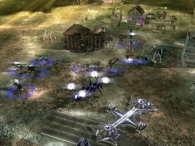 Le SAGE est un bon moteur, qui gère des centaines de détails et des graphismes plus riches qu'on croit l'année où les FPS ont fleuris de toutes parts, je suis le premier à reconnaitre qu'à côté de certains monstres comme Crysis, Call of Duty 4 ou Colin McRae DIRT, c'est sûr ça fait maigre et ça tient mal la comparaison. Pourtant, le spectacle est bien là. Les effets de particules jaillissent de tous les côtés (notamment les fumées qui sont particulièrement réussies), les effets lumineux sont splendides, c'est superbement animé et le niveau de détails est impressionnant, surtout à zoom max. Les bâtiments se dégradent en temps réel, le jeu gère des milliers d'informations par seconde, les effets climatiques, les ombrages, les reflets, la puissance des explosions (surtout pour le canon à ion qui est vraiment impressionnant)... bref si on ne peut pas parler de claque graphique (on en a vu d'autres, surtout sur PC), on peut parler d'un réel travail de fourmis et d'un confort visuel très agréable. Si comme moi vous avez été obligé de tricher (un peu) pour finir l'aventure, avec la possibilité de créer 200 factions par exemple, on assistera à quelques ralentissements assez compréhensibles étant donné qu'on surcharge littéralement l'écran. Mais faut bien ça pour y arriver sinon le jeu est sadiquement interminable, je n'y reviens pas. En version 1.0 le jeu est déjà très stable mais je l'ai tout de même patché en 1.05 (mieux vaut prévenir que guérir) où là il se révèle d'une fiabilité étonnante. Avec des tâches en fond, des factions par centaines et un rendu complètement surchargé, il n'a jamais planté ! En plus de ça, le jeu se révèle peu gourmand en matière de ressources système et les loadings sont très courts (mais au cas où, ne vous inquiétez pas, y'a de quoi lire pour patienter). Enfin j'en remets une couche sur l'aspect "cheap" des vidéos live (filmées) dont la résolution est très haute. Presque HD, le grain est très fin et leur nombre est assez conséquent. Je résumerai en disant que si on ne tient pas là le plus beau jeu de 2007 sur PC, son rendu visuel travaillé (et tout en 3D ai-je besoin de le préciser ?) et son animation très fluide, font qu'on se régalera les pupilles.